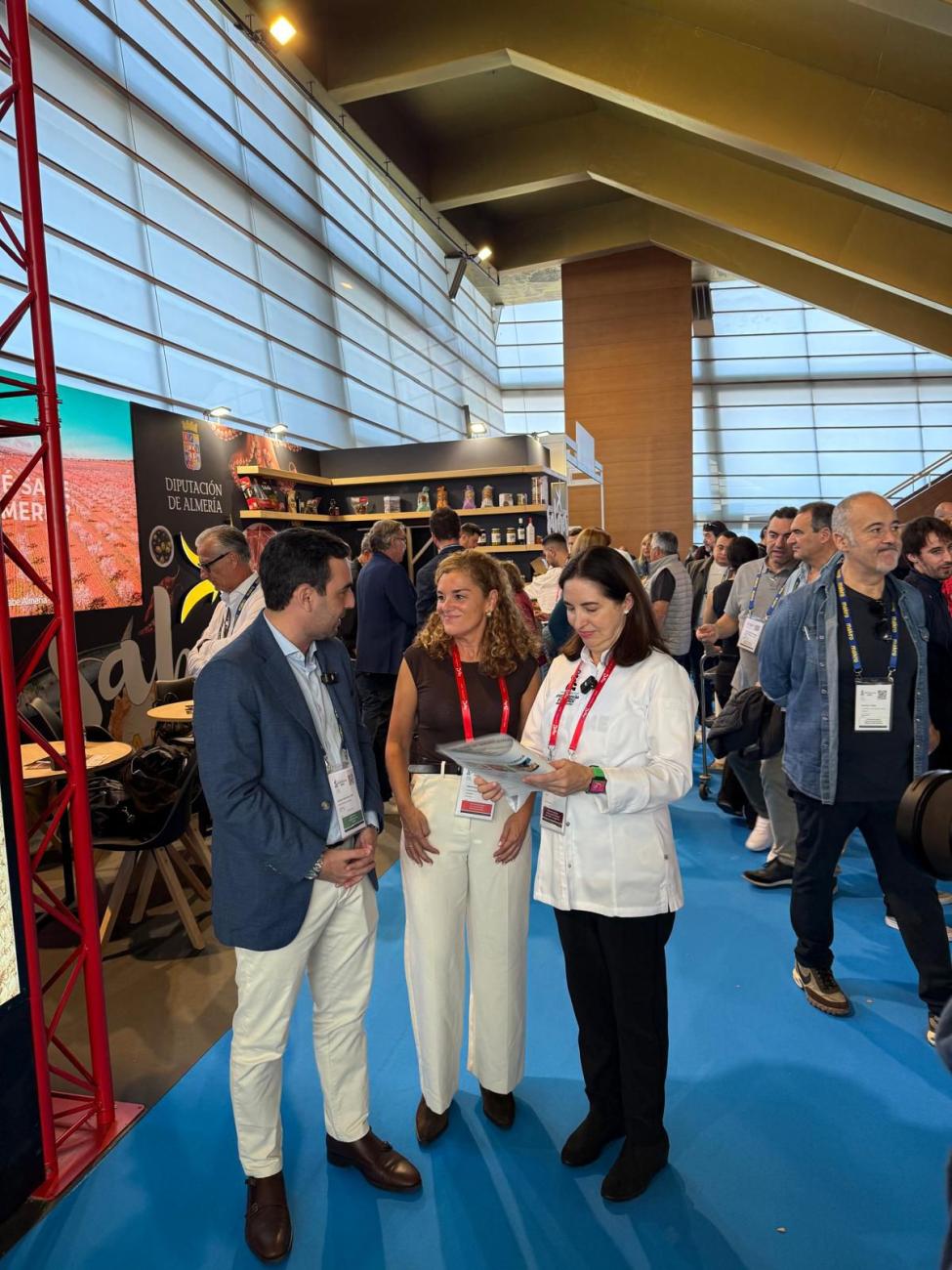 Entre las personalidades que hoy han visitado el stand almeriense se encuentran la chef Elena Arzak, del Restaurante Arzak de tres estrellas Michelín, o la coordinadora del evento, Ainhoa Velasco. Ambas han felicitado a la delegación almeriense por la propuesta que se ofrece en el stand y han alabado la variedad y calidad de los productos almerienses.