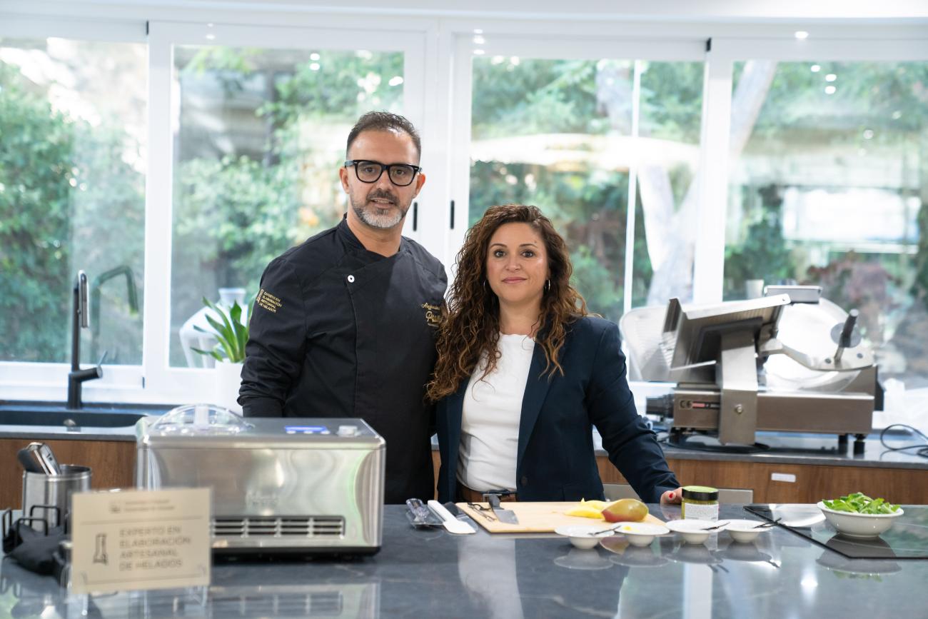 Hoy ha realizado un showcooking en el espacio gastronómico de Sabores Almería, la marca gourmet de Diputación, en el Paseo de Almería, 34, acompañado Prado Zamora, su socia y directora de Marketing de Pralex Heladerías Artesanales, de Vera, y arropado por representantes de las tres administraciones: la diputada provincial María del Mar López Asensio, el concejal del Ayuntamiento de Almería, Joaquín Pérez de la Blanca, y el delegado territorial Juan José Alonso. También ha asistido el alcalde de Garrucha, Pedro Zamora, y el concejal de Turismo, Pablo Fernández Galindo.